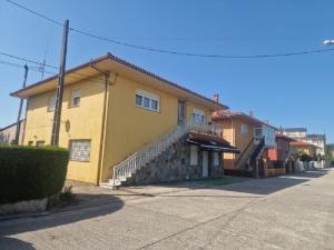 En la parte posterior, cuenta con un pequeño terreno, a patio y huerta, y una conctrucción de 61 m2 a garaje y alpendre con una lareira.